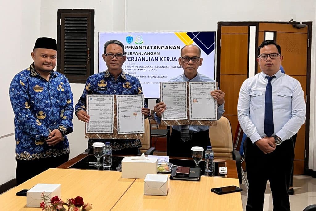 (Pandeglang, 17 Oktober 2023)Penandatanganan Perpanjangan Perjanjian Kerjasama Antara badan Pengelolaan Keuangan Daerah dengan Kejaksaan Negeri Pandeglang tentang Penandatanganan Masalah Hukum...